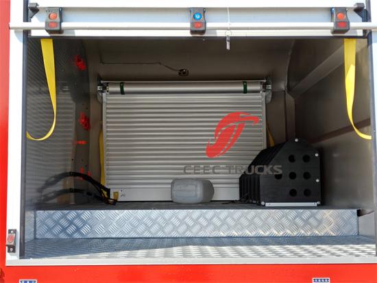 4.车身结构及材料工艺: 消防车的车身结构直接关系到其耐用性和功能性。高强度特种钢制成的底盘,搭配铝合金材质的设备舱,在保证强度的同时,也实现了轻量化。永不生锈的铝合金结构等防锈设计,延长了豪沃消防车的使用寿命。此外,带雨水槽的卷帘门、可承重300kg的防滑踏板等细节设计,都体现了对安全性和使用便捷性的考量。