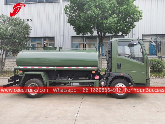 3CBM HOWO运水车 (也称为3吨洒水车,水罐车,豪沃水罐车,价格优惠的运水车,洒水车) 是用于道路冲洗、树木草坪绿化、高层建筑清洗、道路及工厂建设,具有冲洗、洒水、输送水、消防等功能。