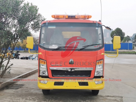 HOWO 5000 升道路清扫车,HOWO 4x2 右舵底盘,6 档手动变速箱,云内 116 马力柴油发动机,不锈钢集尘箱和清水箱,意大利电机 4 刷系统,带驾驶室电动控制,操作方便。所有喷漆和标识取决于要求。