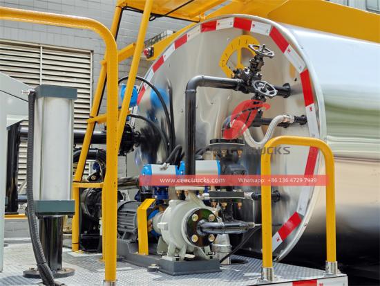 双层保温罐技术:3000L沥青罐采用80mm厚石棉保温层+不锈钢磨砂外板,8小时内温降≤12℃,大大减少沥青反复加热次数,降低燃料消耗。内置防浪板设计,防止沥青在运输过程中晃动飞溅,提高安全性。