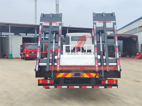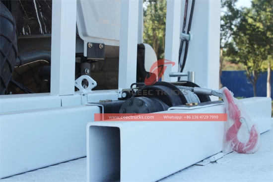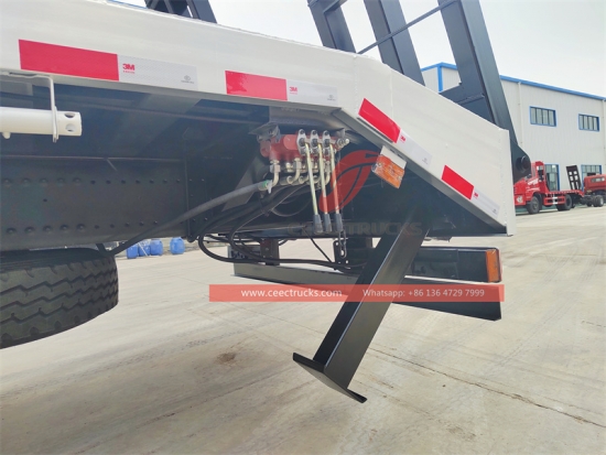 中东欧卡车平板运输车采用WABCO双缸空压机、制动阀、HYVA前置液压系统等世界先进技术和零部件制造。