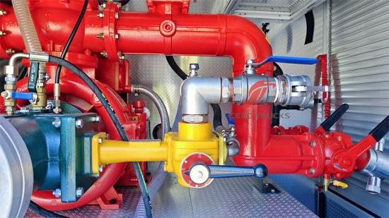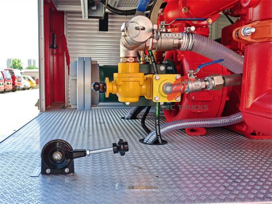 水系统预检: 检查 6 000L水箱 , 排净残水防止冻结(冬季),每月进行内壁生物膜测试(ATP测试<50RLU),注水过滤装置精度(≥200目)。开机前确认,真空泵密封性(30秒内真空度达到-85kPa),出水压力传感器校准(误差<±0.2MPa),泡沫比例混合器精度测试(±1%)。