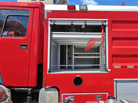 6×4, RHD/LHD can be optional该消防救援专用车基于坚固的豪沃6x4重载底盘打造,汇聚了371马力的卓越动力,可以挑战各种艰难路况,为应急消防救援奠定了良好的基础。豪沃消防车配备6000升大容量水箱和PS专业消防泵,喷射距离可达65m。提供操作简介、可选控制面板语言和多种可选配置,可满足不同需求。这款豪沃消防水车为消防安全提供了坚实的保障,并展现了卓越的性能和灵活性。豪沃消防车的双排驾驶室提供了足够的空间和质量来装载消防设备和保持良好的驾驶性能。驾驶室可容纳5名消防员,并配备空调,确保驾驶员在任何天气条件下都能保持舒适。