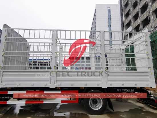 豪沃8吨仓栅式货车,豪沃4x2底盘,6档手动变速箱,康明斯154马力柴油发动机,高强度钢制仓栅式车身。货厢尺寸可根据需要定制。所有喷漆和标识均按要求定制。