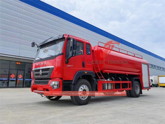 HOWO洒水车,HOWO水罐车,HOWO 4×2洒水车,HOWO水车制造商,HOWO水车工厂价)设计用于在消防行动中向消防员运输和供应水。它通常由安装在消防车底盘上的大型水箱组成,配备消防泵、软管和其他消防设备。这些卡车专门设计用于将大量水输送到火灾现场,在那里可以用来灭火或支持其他消防活动。CEEC卡车水车主要由底盘、水箱、泵、阀门以及水管、喷头等部件组成。水车采用优质碳钢板制成。主要特点: