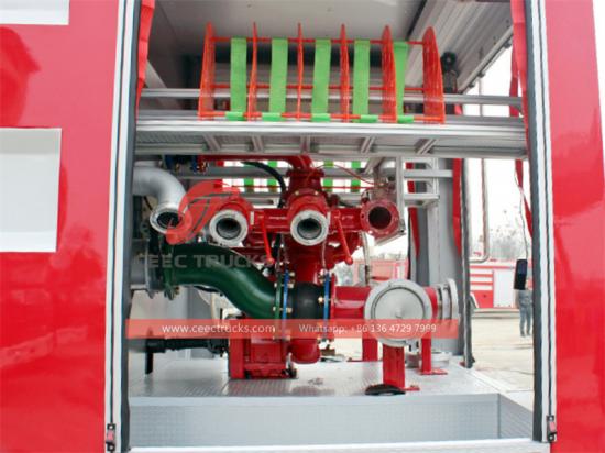Large capacity water tank豪沃8x4 火斗争 卡车完美融合了强大的性能、精湛的工艺和实际应用优势。这辆豪沃消防车配备了强劲的MC13.54-50发动机,输出功率为540 马力和8x4 足以应对各种紧急情况的驱动系统。其最高时速可达95公里/小时,确保消防员能够快速抵达火灾现场。灭火豪沃的容量4x4 消防车 -65升/秒的泵送流量和65米的射程足以应对大多数火灾。8000 升水箱容量和三十00升泡沫罐为持续作战提供充足保障。高强度特种钢制成的底盘,确保了车辆结构的稳定性。铝合金材质的器材舱不仅重量轻,而且永不生锈,大大延长了使用寿命。PP复合材料的液罐,轻便耐用。从带雨水槽设计的卷帘门到防滑设计的踏板,每一个细节都彰显着精湛的工艺,无不体现出对消防员安全和便捷的周到考虑。
