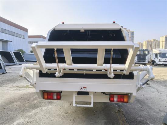 Rear tilting device for 360L and 1100L metal bins这 6 CBM rear loader truck is built on the Howo light duty chassis, equipped with an YN4102QBZL diesel engine with a maximum power of 1 16 HP and a peak torque of 290 Nm, matched with a 6-speed manual transmission WLY. It is powerful and stable, and can challenge all kinds of difficult roads. The garbage compactor bin is made of high-tensile steel, and key parts such as the floor (4mm) and side panels (3mm) are reinforced by laser/plasma cutting and automated welding processes to ensure the durability of the body. With its efficient compaction, strong power, modular design and strict manufacturing standards of the CEEC trucks factory, the Howo 6 CBM rear loader truck has become an ideal solution for urban garbage disposal around the world.