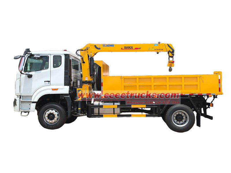 4X4, LHD drive type avaiableHOWO单桥4吨随车起重机具有较高的承载能力和抗弯性能,其最大起重量4吨,最大起重力矩10T.M,液压系统最大流量25L/min,起重机自重1271kg,具备360°全回转功能,可适应工地、港口等多场景作业。 HOWO单桥4吨随车起重机 配有稳定的支腿和底盘,集成过载保护、高位限位等多重安全装置,操作简便,安全性高,是中小型起重作业的可靠选择。