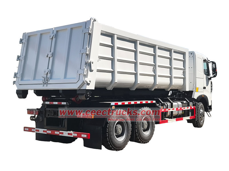 Box volumeHowo T7H 驾驶室滚装车是一款专为城市环卫和垃圾收集运输而设计的高效运输车辆。它采用中国重汽 T7H 系列底盘,动力强劲,载重能力大,能够应对复杂的路况。
