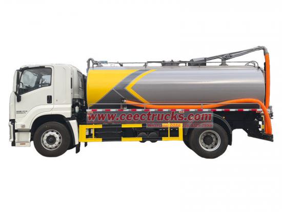 Optional to be mounted Italy Moro pump五十铃10000升化粪池清空罐车是用于清理污水、粪便等废弃物的专用车辆,主要用于城乡环卫部门抽吸、运输粪便等污水,并可将收集的废弃物运送至指定处理场所进行无害化处理。 五十铃化粪池清空油罐车 适用于抽吸粪便、污水、污泥及混有较小悬浮杂物的液体;适用于市政环卫、大、中、小型工矿企业、小区、学校、化粪池清理及输送、城市管道清理疏通、工厂沼液、沼渣清理等。