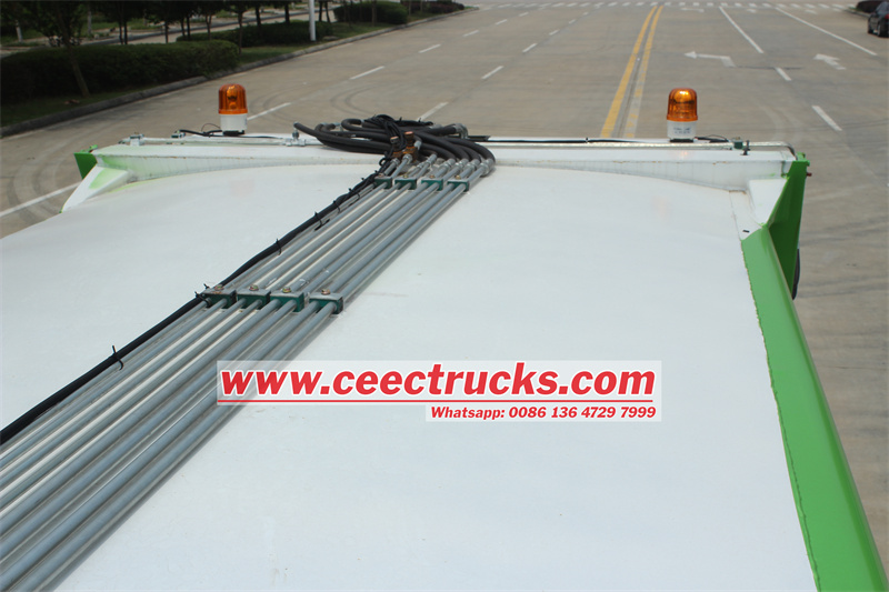 垃圾收集组件:垃圾储存罐车采用高强度钢材质车体,配有尾板、滑板、刮板、推板、倾斜装置,实现垃圾装卸工作。