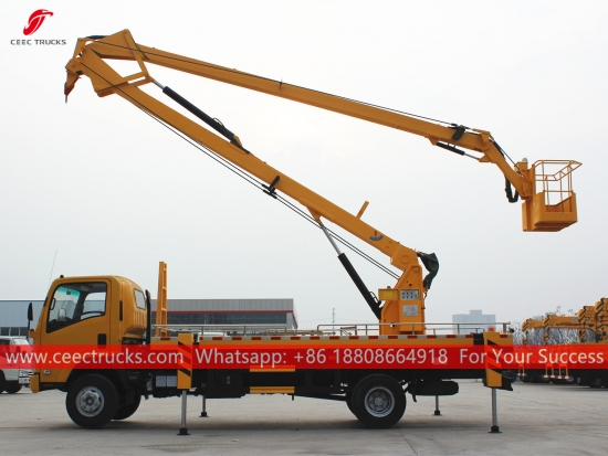 五十铃18米载人叉车 (还称为 五十铃高空作业平台车、五十铃载人升降车、五十铃卡车安装动臂升降车、热销臂式升降斗车、五十铃高平台作业车、低价高空作业平台车)非常适合维护交通信号灯、路灯、园林树木、清洁/设置招牌和其他高空作业。