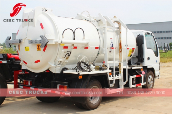 2017 年最畅销的五十铃 4000L 厨房垃圾车,使用五十铃 98HP 柴油发动机、5 档手动变速箱、4cbm 垃圾罐装置、集尘罐侧装装置、后液压卸料装置,喷漆和标识取决于要求。
