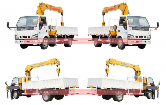 出售五十铃品牌 4T 伸缩臂起重机卡车,五十铃技术柴油发动机 120HP,手动 MSB 5 档变速箱,操作简便,配备 4000kg 伸缩臂起重机,也有遥控器可供选择,货箱长度可达 4000mm