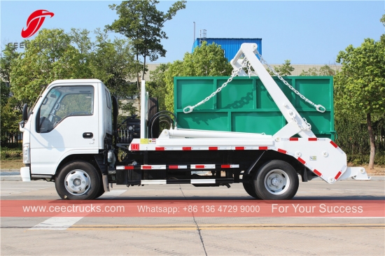 蒙古五十铃4cbm自卸垃圾车,五十铃4x2底盘,MSB 5档手动变速箱,98HP柴油发动机,高强度钢摆臂系统,液压控制装置和电气控制箱可选,所有喷漆和标识均根据要求而定。