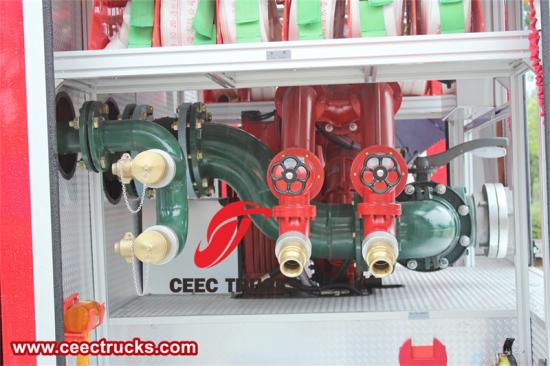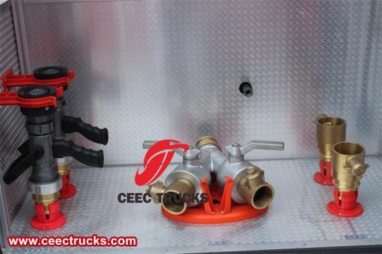 集水器: 集水器是消防车快速从外部水源吸水的重要装置,通常安装在车辆前部或侧面,利用强大的吸力将水源(如湖泊、河流或消防栓)中的水吸入水箱,为灭火作业提供充足的水量。