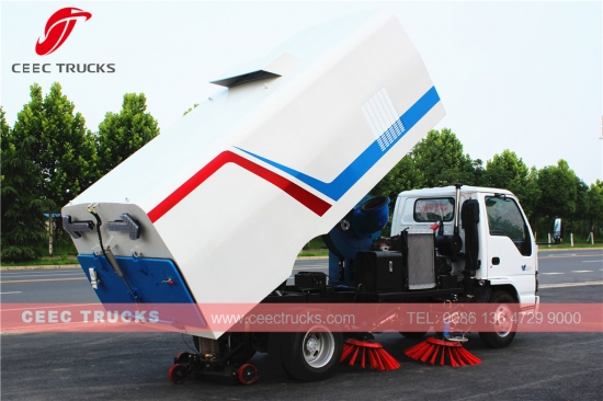 五十铃 5cbm 道路清扫车 (也称为道路清扫车、液压街道清扫车、真空道路清扫车、 垃圾收集车、道路清洁车) 是 适用于小区、城市、高速公路、建筑工地、高架路、桥梁、广场、机场、码头等沥青混凝土、水泥混凝土路面的日常清扫。