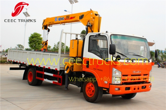 Authorized ISUZU 5,000kg boom crane mounted truck manufacturer, we CEEC produce and export ISUZU 5 T mounted crane cargo truck to Myanmar. which use Japanese technology ISUZU 4*2 LHD chassis, with 190HP super powerful engine. 6-shift manual gearbox. Famous Chinese XCMG brand 5 T telescopic boom crane, strong performance.