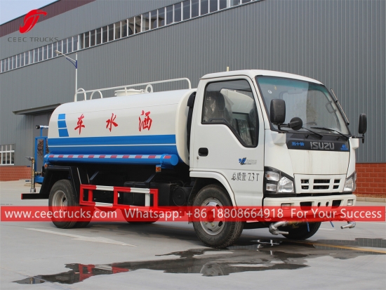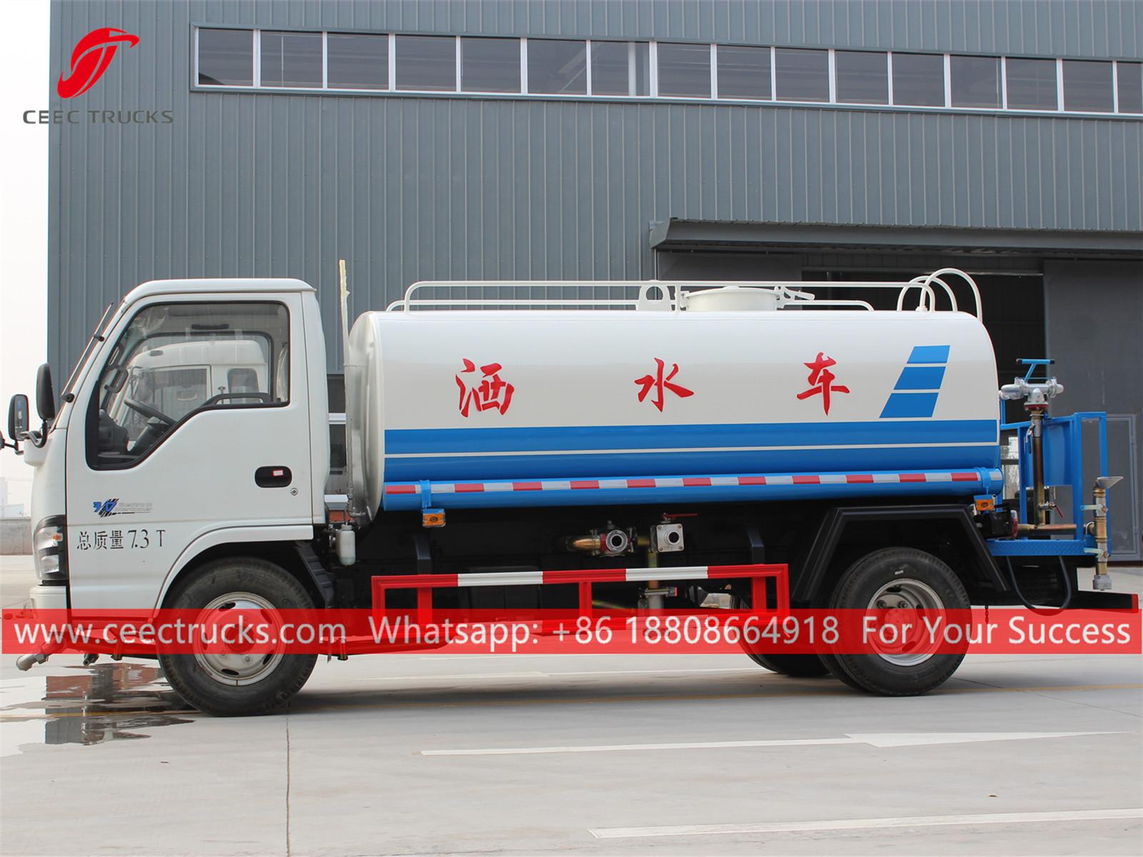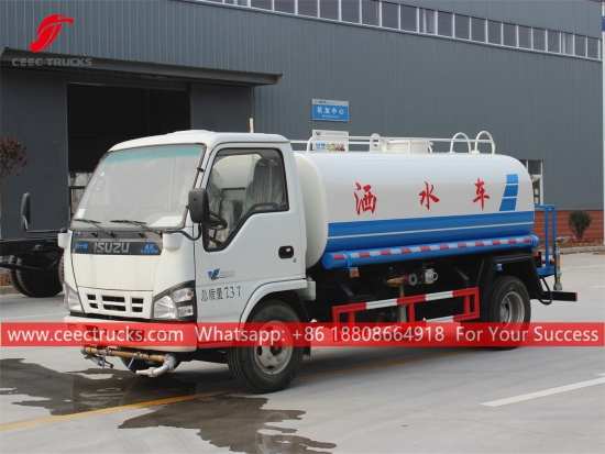 五十铃5吨水罐车 (也称为五十铃 600P 水车,热销五十铃洒水车,五十铃洒水车,五十铃运水车,新型运水车,小型水罐车五十铃) 是用于道路冲洗、树木草坪绿化、高层建筑清洗、道路及工厂建设,具有冲洗、洒水、输送水、消防等功能。