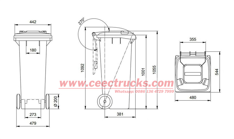 | 正面 | 约230L,垃圾车前部 | |