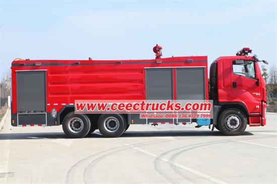 2000L dry powder and 8000L water tank这款五十铃 GIGA 干粉消防车是一款令人印象深刻的消防武器,结合了先进的技术与强大的性能。 该车采用五十铃底盘,搭载420马力6WG1-TCG60发动机,动力保障强劲。该辆五十铃消防车采用6×4驱动方式,匹配12档变速箱,最高时速可达90公里/小时,确保快速应对各种突发状况。车辆总重35吨,配备8000升水箱和2000升干粉罐,可应对各种复杂的火灾情况。其高压消防泵工作压力为1.6-2.5MPa,流量为80-120公斤/秒,喷射距离可达40-60米,灭火能力强大。