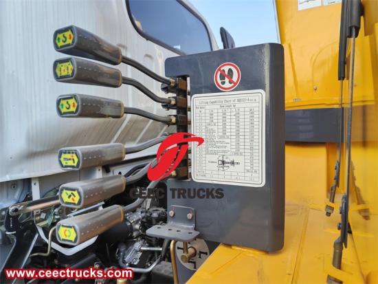 这款卡车的核心是徐工SQS125-4动臂起重机。该起重机拥有坚固的动臂结构和先进的液压系统,提供无与伦比的伸展范围、精度和负载处理能力。它能够轻松吊起重物,是建筑工地、物流作业以及对精度和强度要求严格的工业应用领域不可或缺的工具。