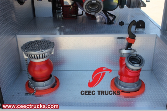 该消防车控制面板简洁实用,配备了压力表、真空表、水压表和转速表等关键仪表。压力表显示系统内部压力,真空表监测吸力状态,确保系统正常运行。水压表精准显示水泵系统水压,为消防员提供重要参考信息。转速表监测发动机转速,帮助消防员了解发动机工作状态。