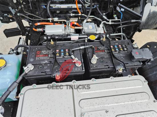五十铃EVM600电动底盘车的电池组采用宁德时代最新研发的一体化磷酸铁锂电池组,容量为106.95kwh,位于车架两侧。相较于传统电池组,新车采用的单组电池可以减少箱体内部高压线束及支架的数量,有助于减轻车辆整体重量。其次,该车型在WLTC等速法下的续航里程可达480km,兼顾了卡车驾驶员日常作业中的续航里程需求。
