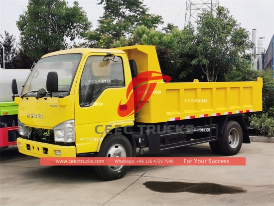 五十铃3吨自卸车,五十铃4x2底盘,MSB五档手动变速箱,五十铃98马力柴油发动机,高强度钢制自卸车车身,可选配HYVA或国产液压升降油缸。所有喷漆和标识均根据需求定制。