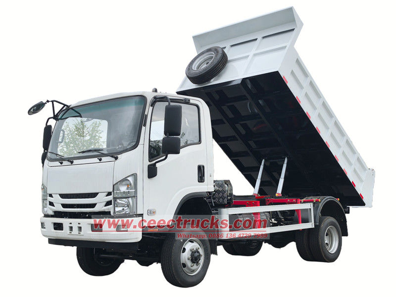 Different payload capacity optional五十铃4x4驱动自卸车是一款配备自动卸料装置的专用运输车辆。其核心功能是通过液压或机械举升系统使货厢倾斜,快速倾倒内部装载的砂石、煤炭、矿石等散装物料。其核心特点是后部货厢可通过液压系统举升和倾斜,实现快速自动卸料,大大提高工作效率。 五十铃4x4驱动自卸卡车 采用动力强劲的柴油发动机,配备越野轮胎和高离地间隙,能适应复杂的路况。在建筑工地、矿山开采、道路建设等领域,自卸汽车凭借高效的运输能力和灵活的卸载能力,成为不可或缺的工程设备车辆。