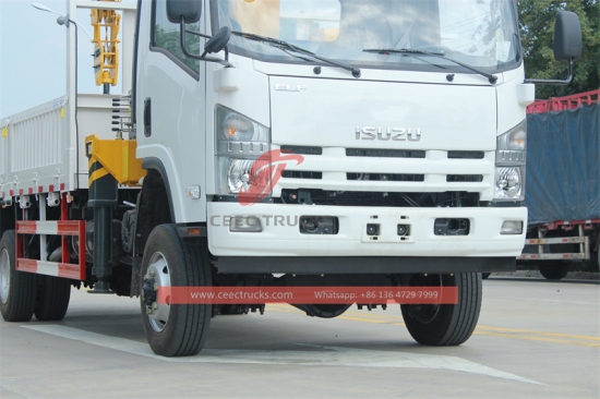 五十铃 4x4 700P 5 吨起重机卡车,五十铃左侧驾驶底盘,MLD 6 档手动变速箱,五十铃 190HP 柴油发动机,中国知名品牌 5 吨伸缩臂起重机,货厢尺寸按要求,喷漆和标识取决于要求。