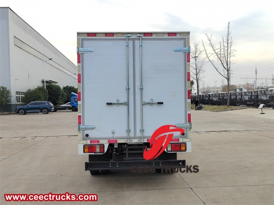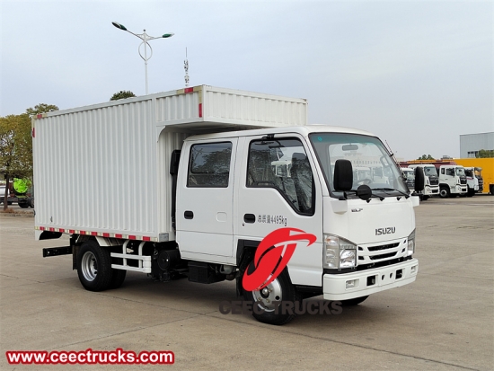 五十铃 ELF 双舱载货车 又称五十铃100P双排厢式货车,五十铃 NPR 双舱皮卡车,五十铃 4x2 2+3 座厢式货车,五十铃 100P 轻型货车厢式货车,五十铃100P铝合金厢式货车。