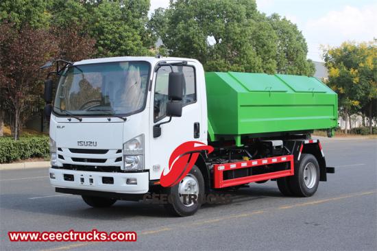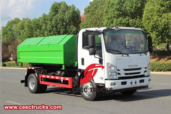 6 tons Hook lift garbage truck五十铃 ELF 多座吊钩式卡车 也称为 五十铃ELF滚装卡车、五十铃 700P 钩式装载垃圾车、五十铃 ELF 700P 6 吨钩式装载箱式卡车、五十铃带集装箱的钩式装载卡车、五十铃 NPR 滚装钩式装载垃圾车。 五十铃 ELF 多座吊钩式卡车 集坚固耐用的设计、丰富的功能和先进的工程技术于一体。这款卡车专为需要高效装载、运输和卸载各种货物的应用而设计,尤其适用于需要配备拉钩系统的场合。