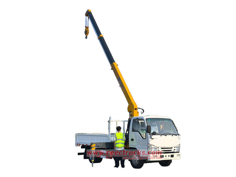 起重机可供选择,您可以选择直臂或折臂起重机。五十铃随车起重机由吊臂、转盘、框架、支腿和其他部件组成。