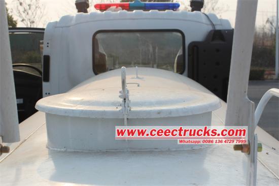 卡车后部安装了一个宽敞的工作平台,配备高压喷水枪,可进行定向喷洒作业。此外,该平台上还安装了一套便携式消防泵组,为紧急情况提供了额外的灵活性和应对能力。
