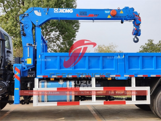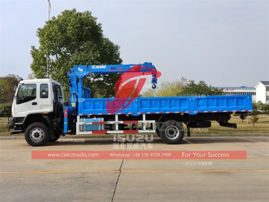 五十铃 FVR 5 吨起重机卡车,五十铃 FVR 4x4 左侧驾驶底盘,MLD 6 档手动变速箱,五十铃 240HP 柴油发动机,中国知名品牌 XCMG 5 吨伸缩臂起重机,货厢尺寸按要求,喷漆和标识取决于要求。