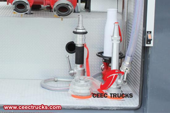 五十铃 FVZ 12000L 泡沫泵消防车配备了各种消防装备和设备,使消防员能够有效、高效地灭火。以下是车辆上各种消防设备的描述: