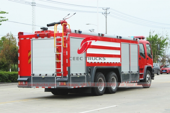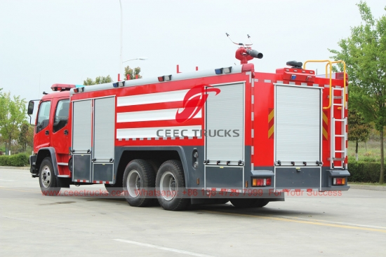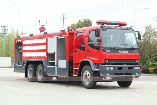 五十铃 FVZ 水泡沫消防车,五十铃 FVZ 左侧驾驶型号 6x4 底盘,FAST 9 速手动变速箱,五十铃 300HP 柴油发动机,喷漆和标识取决于要求。