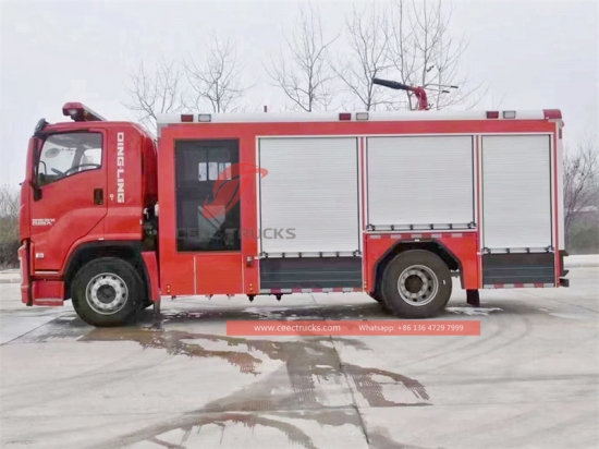 日本品牌五十铃 GIGA 8000 升水箱消防车,五十铃新款 GIGA 左侧驾驶 4x2 底盘,FAST 12 档手动变速箱,五十铃 380HP 柴油发动机,配备中国知名消防泵和消防炮,喷漆和标识取决于要求。