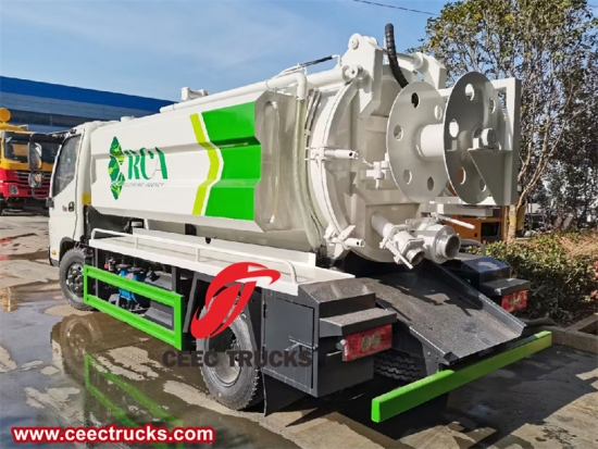 这辆真空吸污车拥有14,000升的储罐,足以胜任大规模清洁和废物管理项目。如此大的容量使其能够在一次行程中收集和运输大量碎屑、污泥和液体,从而减少频繁清空的需求,并最大限度地提高运营效率。