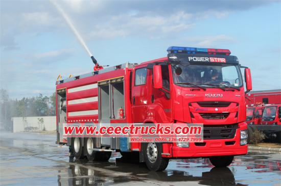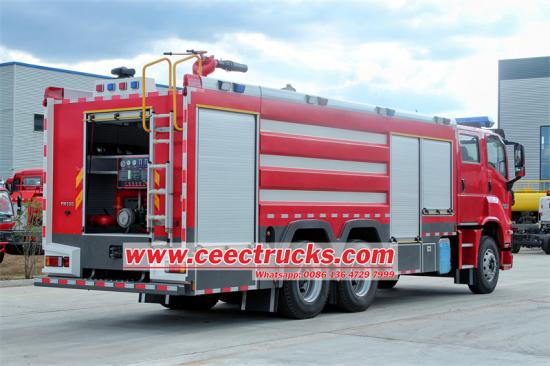 10cbm water tank,1.5cbm foam tank这辆五十铃GIGA消防车完美融合了强劲的性能、精湛的工艺和实际应用优势。这辆五十铃消防车搭载了五十铃强劲的6WG1-TCG60发动机,420马力的输出足以应对各种突发状况。其最高时速可达95公里/小时,确保消防员能够快速抵达火灾现场。60升/秒的泵送流量和65米的射程足以应对大多数火灾。8000升的水箱容量和1500升的泡沫罐为持续作战提供了充足的保障。高强度特种钢制成的底盘确保了车辆结构的稳定性。铝合金材质的设备舱不仅重量轻,而且永不生锈,大大延长了使用寿命。PP复合材料制成的液罐既轻便又耐用。每一个细节都彰显着精湛的工艺,从带有雨水槽设计的卷帘门到带有防滑设计的踏板,都体现了对消防员安全和便捷的周到考虑。