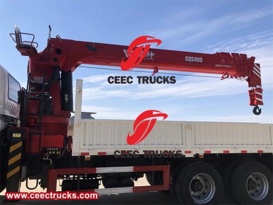 五十铃十轮卡车上安装的8吨SQS400伸缩式起重机是一款多功能设备,可用于各种作业。该起重机的伸缩臂使其高度可达21英寸,伸缩臂长度可达18.9英寸,非常适合在难以触及的区域起重和放置货物。其强大的起重能力确保其能够处理重物,而不会对卡车的发动机或底盘造成压力。