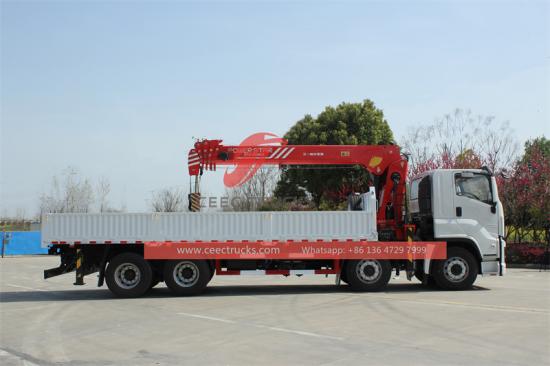 Customized to equipped with remote control device五十铃GIGA 8x4随车起重机是一款集起重运输于一体的专用卡车。它搭载五十铃品牌6WG1柴油发动机,拥有460马力的强劲动力,在工程作业中大显身手。同时,它配备了经典的GIGA驾驶室,可容纳三人,并配备空调。无论严寒酷暑,都能为驾驶员营造安静舒适的驾驶环境,有效缓解长途驾驶和高强度作业的疲劳。五十铃GIGA 18吨随车起重机的上部配备了伸缩臂起重机,最大起重量为18吨,最大高度为18.5米,可360°旋转。多语言控制面板(包括英语)使世界各地的操作员都能轻松上手,无障碍操作。五十铃GIGA国产装载机起重车还提供多种选装配置,例如伸缩臂起重机、液压自卸箱、根据需求定制的箱体厚度和高度以及选装的遥控箱。选择五十铃GIGA国产装载机起重车,意味着选择更高的作业效率、更低的运营成本和更广阔的商业可能性。它是工程建设、物流运输、设备安装等领域的理想全能手。