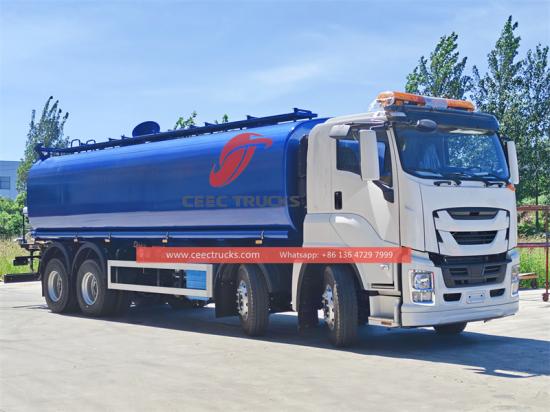 8×4 heavy-duty, large capacity五十铃 520HP GIGA 8x4 水罐车搭载五十铃 6WG1-TCG62 发动机,动力强劲。该发动机采用直列 4 缸 6 冲程设计,并配备增压、中冷和水冷技术。520HP 马力输出,最大扭矩达到 2250 Nm,可输出 900 rpm,额定转速为 18 00rpm,保证了五十铃GIGA 8x4洒水车在启动和爬坡时的强劲动力。五十铃GIGA 5X驾驶室采用一排半设计,2个带卧铺的座位,驾驶室配有空调和收音机,不仅提供了舒适的驾驶空间,还能支持长途运水任务。大容量水箱和高品质的材料,五十铃GIGA洒水车的水箱容量达到30,000L以上,可以满足大面积洒水作业的需要,减少频繁加水的次数,提高作业效率。水箱采用优质碳素钢(Q235),制成椭圆形罐体,具有强度高、耐腐蚀的优点,确保了水箱的使用寿命。