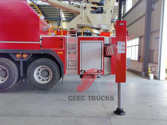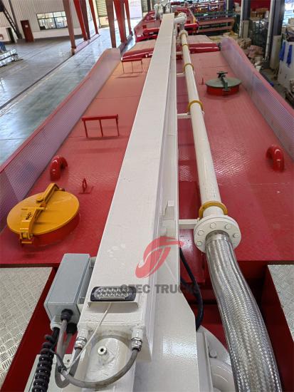 该车采用国产五十铃GIGA重型底盘改装,动力强劲,配置先进。取力器为原厂底盘取力器,动力匹配最佳。副车架采用大截面箱形结构,抗扭性能好,支腿采用短跨度H型结构,动臂采用折叠臂组合,动作迅速平稳;回转部分采用中央回转接头,可实现360度无限位回转。