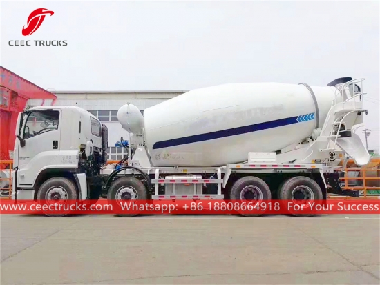 菲律宾14cbm 混凝土搅拌机,五十铃 GIGA 8x4 LHD 底盘,五十铃 380HP 柴油发动机,ZF 16 档手动变速箱,主要部件为电机、泵、减速器,可选品牌为 Eaton、PMP、Rexroth、Bonfiglioli 等,喷漆和标识取决于要求。