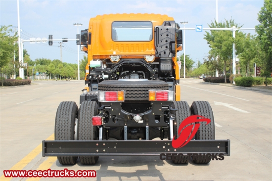 自卸卡车: 该底盘通过加装自卸装置(如液压举升机构)可改装为自卸汽车,适用于矿山、建筑工地等需要频繁装卸重物的场所,自卸功能可提高装卸效率,降低人工成本。