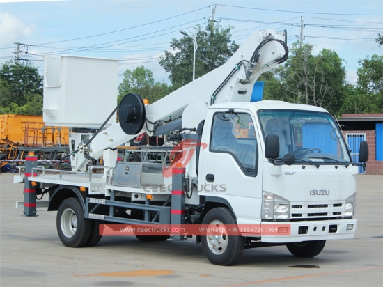 16米斗式起重机,五十铃100P 4x2底盘,5档手动变速箱,五十铃98马力柴油发动机,喷漆和标识可根据要求定制。控制箱可定制语言。
