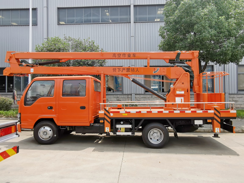 五十铃工作平台车(也称为高空作业车、载人升降车、载人升降车、樱桃采摘车、伸缩式高空平台车、高空作业车、卡车平台、梁式升降车、车载绝缘高空作业车、伸缩臂卡车、高空作业车)非常适合维护交通信号灯、路灯、园林树木、清洁/设置招牌、采摘樱桃和其他高空作业。