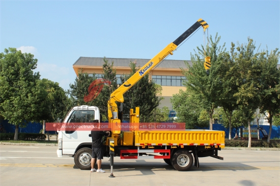 五十铃NKR卡车起重机(也称为卡车装载机、卡车货物装载机、卡车底盘上的折臂起重机、装有后起重机的卡车、起重机装载机货运卡车、装有装载起重机的卡车、动臂起重机、动臂起重机卡车、铰接式起重机卡车)用于起吊货物、装载、运输和卸载重物。